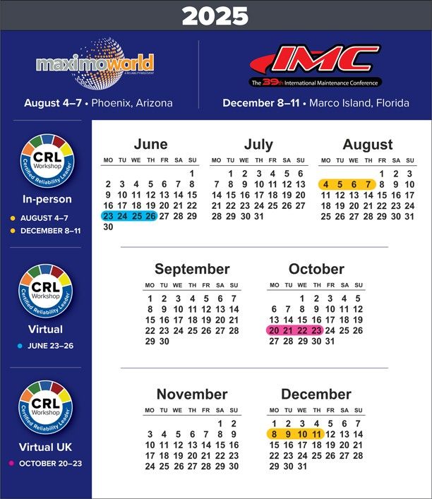 - Learn from the experts: You will have the opportunity to learn from some of the leading minds in reliability and asset management.