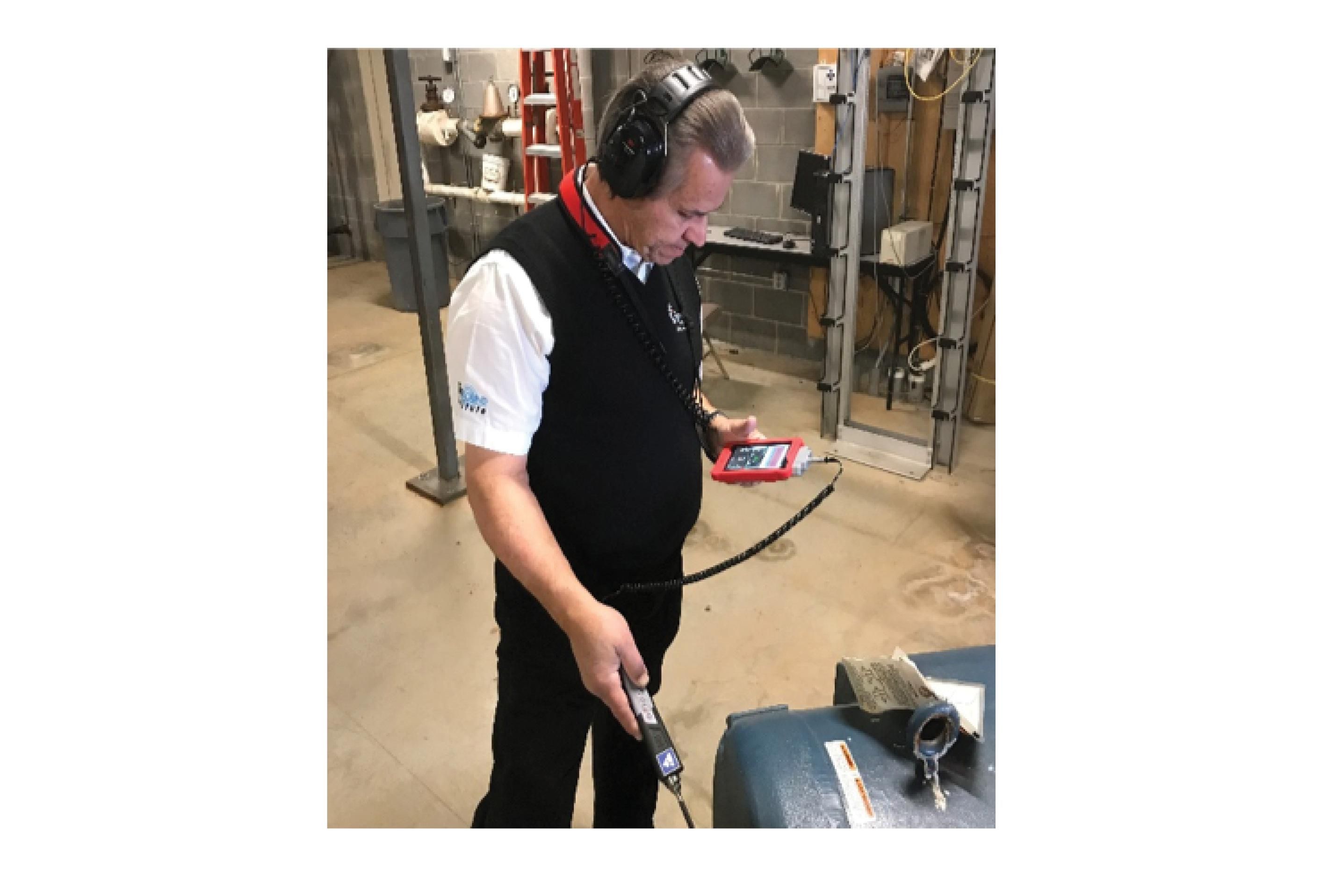 Figure 1: Using an ultrasound instrument to trend decibel readings for trending data (Photo courtesy of The Ultrasound Institute)