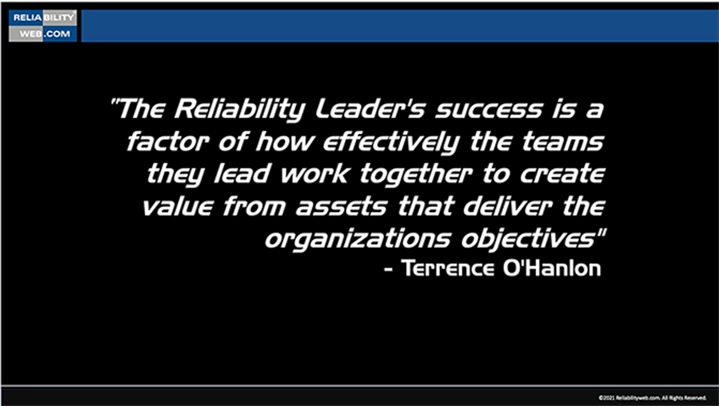 Terrence O’Hanlon, CMRP, and CEO of Reliabilityweb.com® and Publisher for Uptime® Magazine, is an asset management leader, specializing in reliability and operational excellence. He is a popular keynote presenter and is the coauthor of the book, 10 Rights of Asset Management: Achieve Reliability, Asset Performance and Operational Excellence. www.reliabilityweb.com